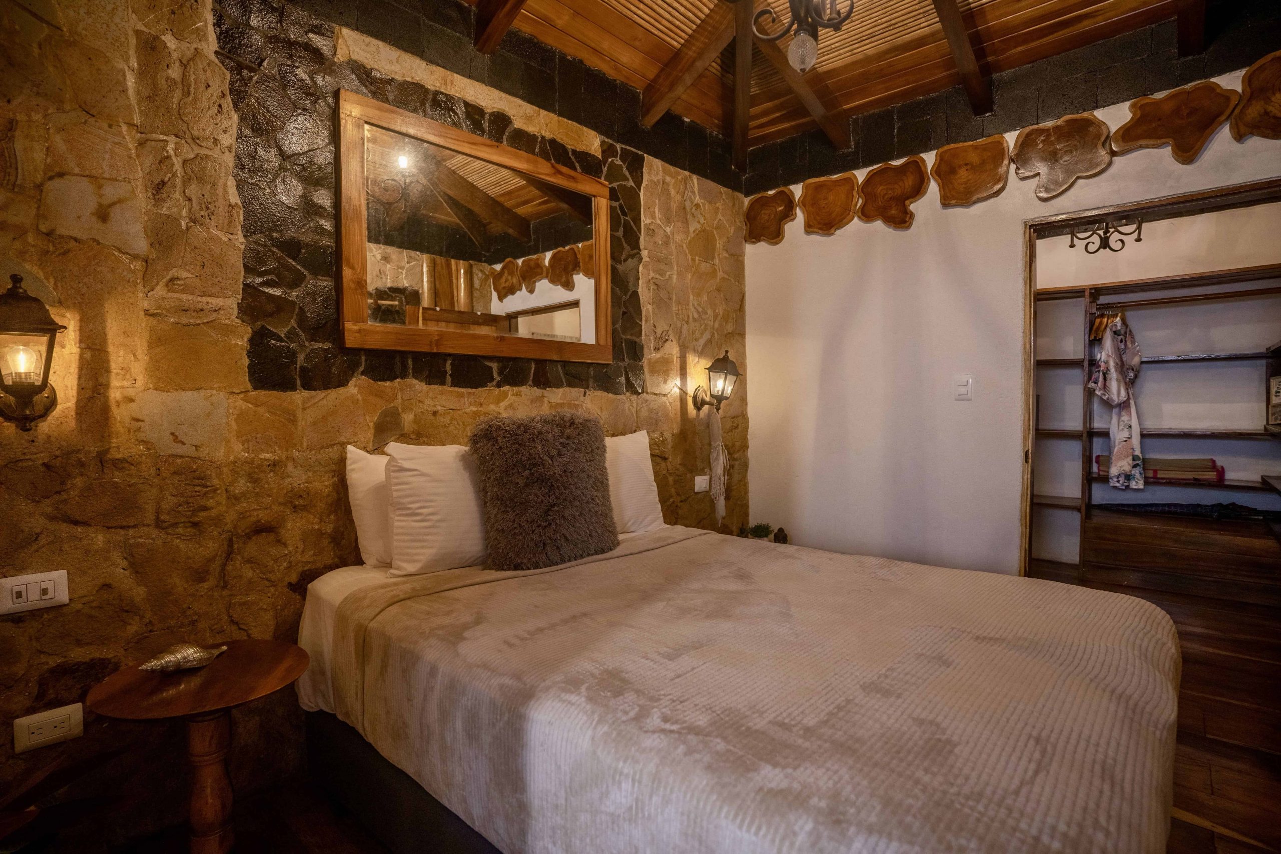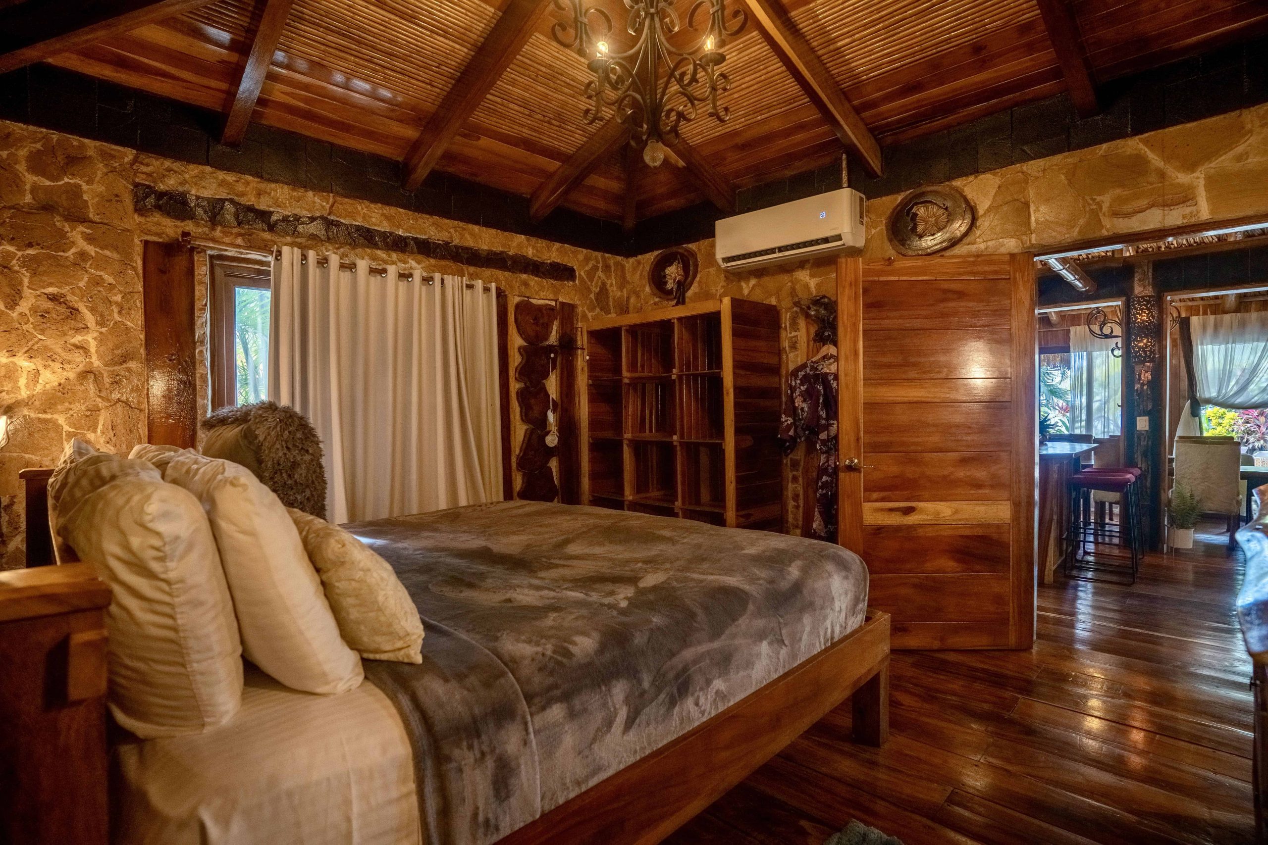 The Garden Room: This intimate haven provides a serene escape, featuring a Queen-size bed and a private en-suite indoor/outdoor bathroom. Perfectly climate-controlled with A/C, it offers a peaceful, sun-drenched space to unwind in total privacy amidst artisanal finishes.