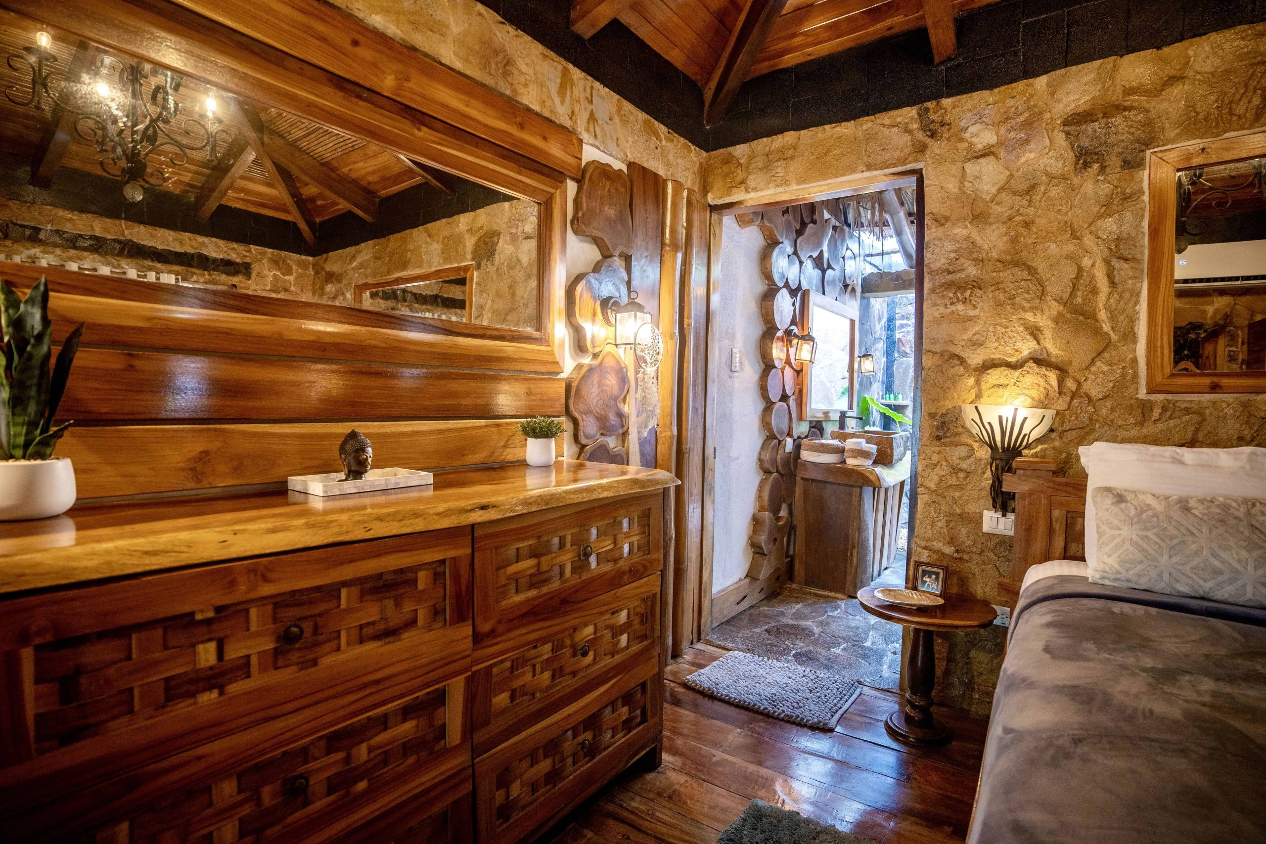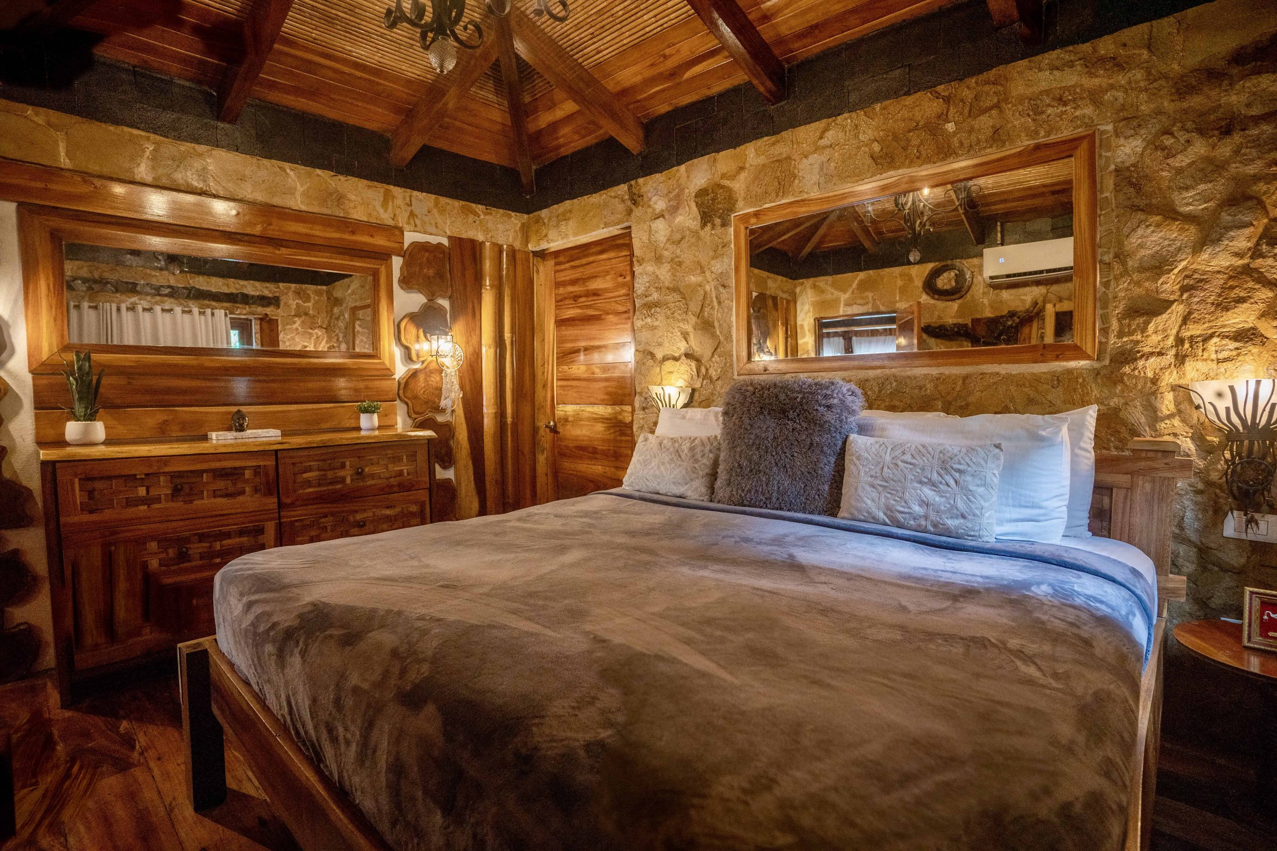 The Jungle Retreat: A true sanctuary of tropical elegance, this second bedroom offers a King-size bed and a sprawling en-suite indoor/outdoor bathroom. Immerse yourself in a lush, open-air bathing experience that connects you directly to the vibrant energy of the surrounding jungle canopy.
